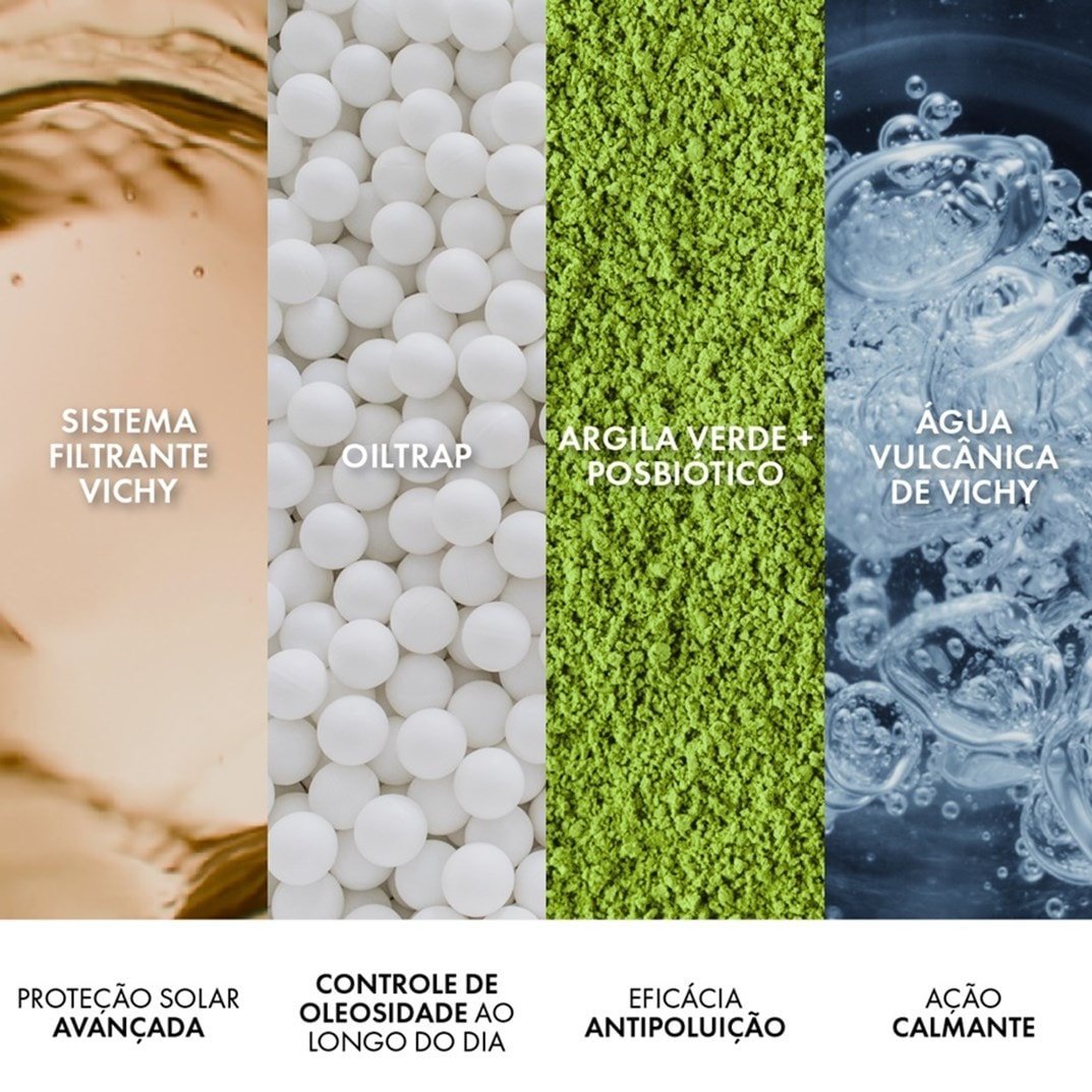 Complexo Antioleosidade: Oiltrap, Argila Verde, Posbiótico e Água Vulcânica de Vichy.